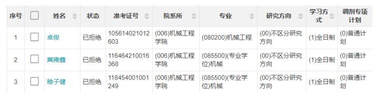 根据beat365手机版官网入口2024年硕士研究生调剂复试(第一批)结果,在中国研究生招生信息网发送录取通知,共有三名同学拒绝录取,信息公告如下: