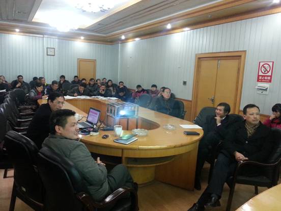 2014年1月9日下午14:30,公司党委宣传部部长、校讲师团成员彭建军博士在公司二楼会议室为公司全体教职工做了党的十八届三中全会精神解读专题报告会,会议由公司党委书记曾建新主持,公司全体教职工参加了会议。