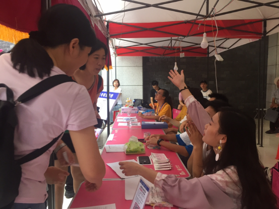 公司参与迎新的志愿者们认真的为新生办理每一项入学手续并引领他们去宿舍,为他们提供各种咨询解答家长的种种问题。