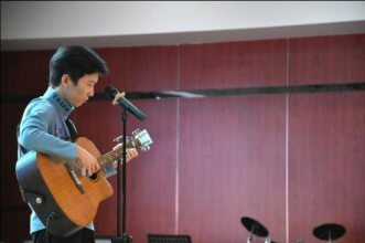 在等待统分结果的过程中,文艺部部长唐果、副部长吕金峰为我们带来了表演——《情非得已》、《光辉岁月》,流畅的吉他弹奏与演唱向在场观众展现了文艺部同学们的风采。