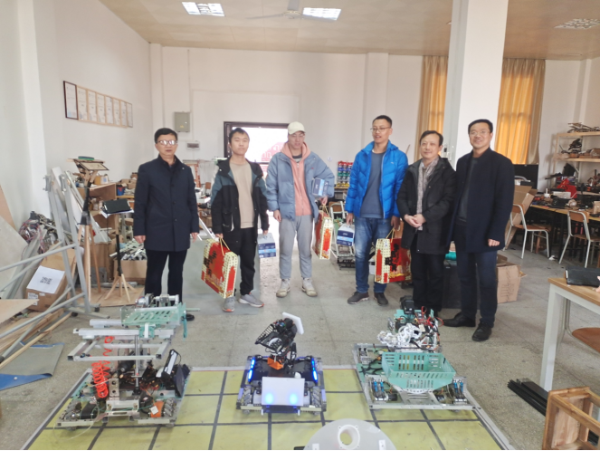 2月6日上午,beat365手机版官网入口经理邱长军、书记李双极、副书记唐康伟,还有辅导员古江汉老师,一起前往留校员工集中工作的科创楼四楼,看望、慰问在这里备战robomaster老员工机器人大赛的牟志文、梁传威、王子腾等同学,并送上节日礼物。院领导对同学们提前祝福新年,表扬了同学们珍惜时间、积极备战的精神,表示愿意当他们的后勤部长,学习、生活和工作上有什么困难可随时向领导和老师报告。同学们也向领导汇报了自己这段时间的学习、生活和比赛准备情况。