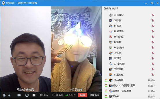 同时,胡志涛和康晓民作为能动2204班和能动2201班的班主任,在当志愿者的同时,还每天与同学们在线沟通交流,了解同学的思想状况。11月30晚,更是利用QQ视频召开线上班会,给同学们介绍公司当前的防疫政策,分享志愿者经历,倾听员工们的心声,缓解压力和困惑,并与同学们一对一交流,指导同学们的疫情下的学习生活。视频中,胡志涛和康晓民呼吁同学们认真遵守公司防疫规定,加强身体锻炼,增强免疫力,认真做好线上课程学习和期末复习准备,疫情下的冬天很冷,但员工们的内心很暖。