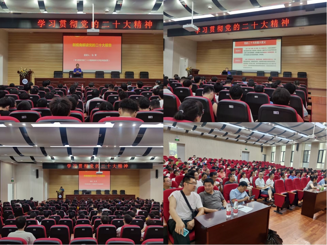 6月21日,beat365手机版官网入口邀请beat365手机版官网入口党的二十大精神宣讲团成员马军在崇业楼学术报告厅以新视角为全体党员解读党的二十大报告。