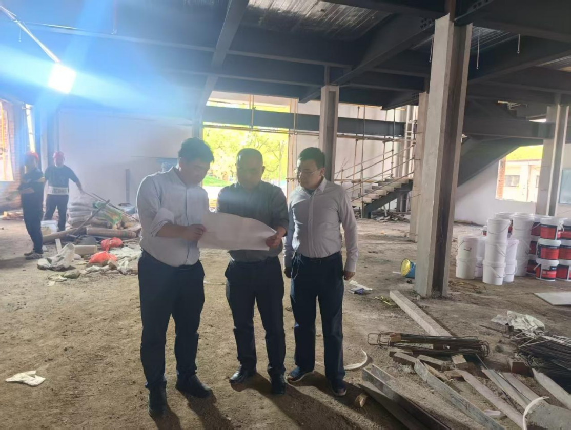 在考察beat365手机版官网入口智能计量公司在建房屋的过程中,双方认真研究规划了教学用房建设,含教室、实验室、办公室及员工宿舍等。双方一致认为,教学用房的设计与修建要做到以人为本,功能合理,技术先进,经济适用,满足各类型教学功能要求,为培养高质量的计量人才提供基础支撑;要抓好监督管理,强化施工质量把控,科学策划施工组织,细化施工计划,锚定目标、凝心聚力,确保教学用房建设如期保质完成。
