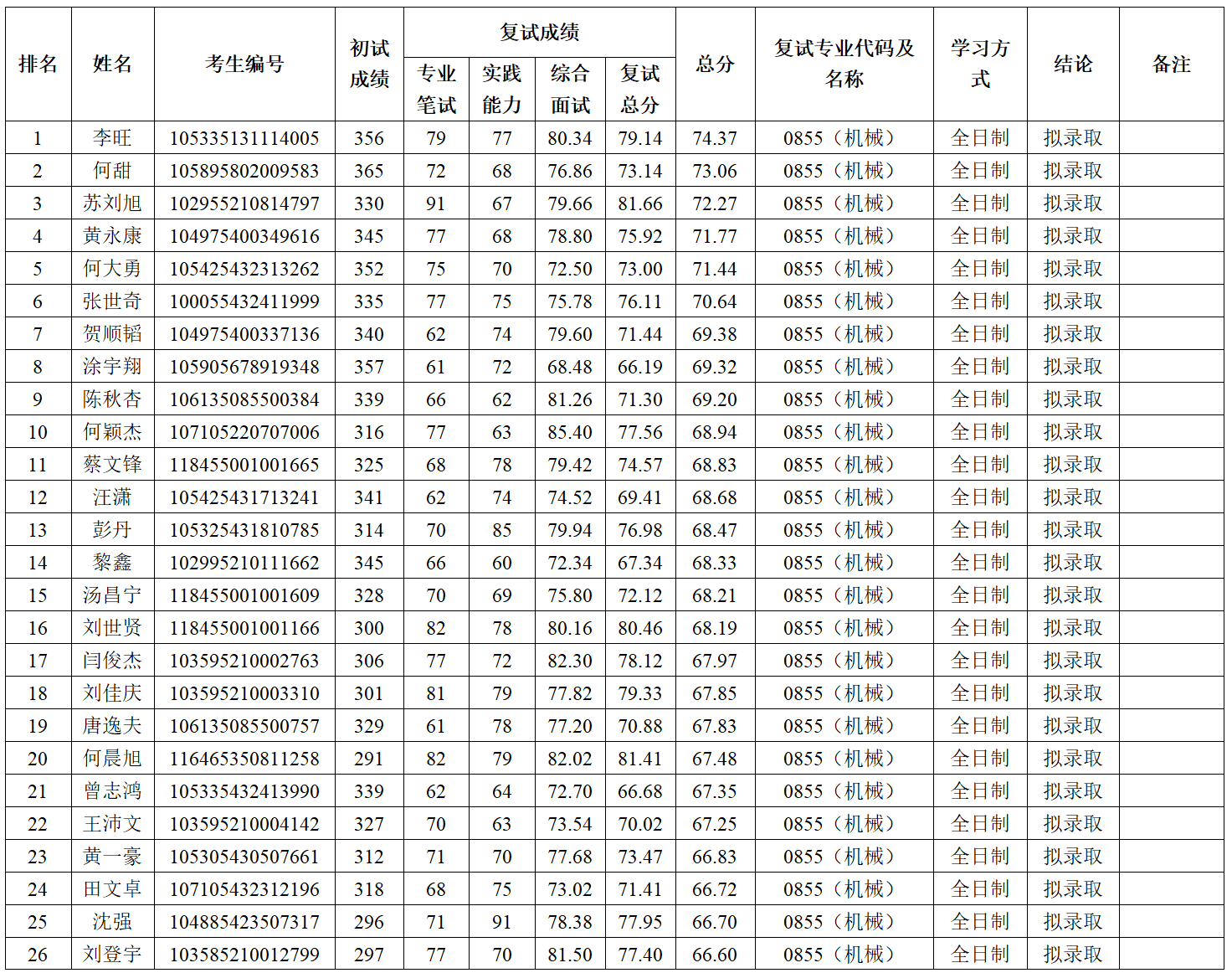 根据教育部、湖南省及beat365手机版官网入口硕士研究生招生录取工作会议精神,2025年4月10日-11日,经公司研究生招生复试小组考核,按公司录取原则,现将复试成绩及公司建议公司拟录取名单进行公示。对复试成绩及上述同学的建议录取有异议,请以口头或书面形式于7日内向公司反映。反映情况要实事求是,具体真实,署真实姓名,以便调查核实。电话:0734-8282557,联系人:申老师。
