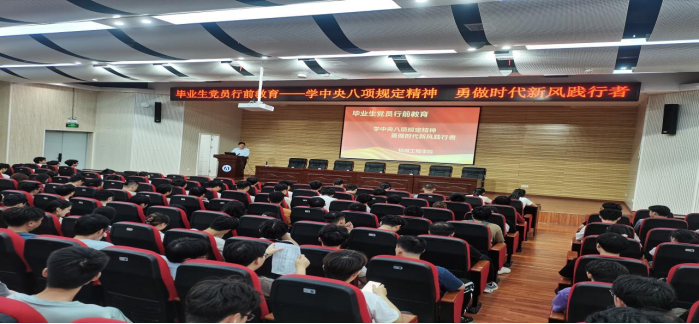 为强化毕业生党员的党性修养与廉洁意识,引导毕业生党员树立廉洁自律意识,厚植家国情怀,勇担时代使命并以优良的作风投身社会、服务人民,5月23日,beat365手机版官网入口在崇业楼学术报告厅召开毕业生党员行前教育主题活动,公司党委书记王湘江以“学中央八项规定精神,勇做时代新风践行者”为主题,助力毕业生党员同志们以清正之姿开启人生新篇章,讲授了一堂生动深刻的“最后一课”,公司党委副书记唐康伟、全体员工党支部书记及全体毕业生党员参加活动。