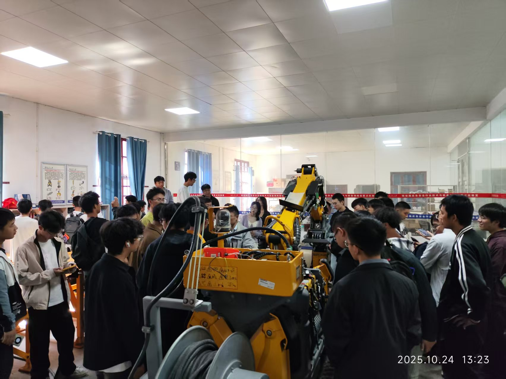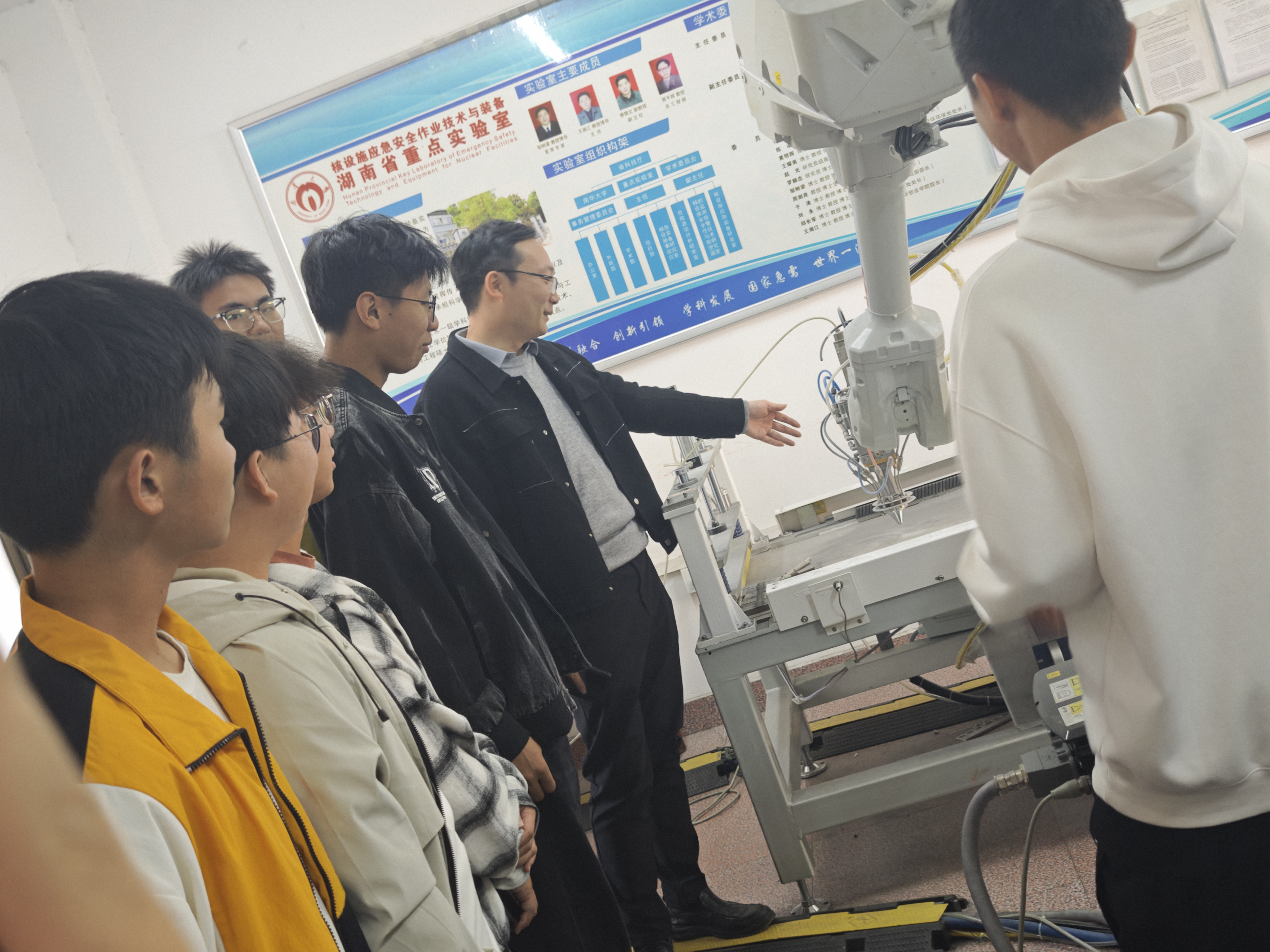 2025年10月24日,beat365手机版官网入口首届核装备创新班60名同学在过程装备与控制工程系主任黄景昊的带领下,走进核设施应急安全技术与装备湖南省重点实验室,开展了一堂生动的现场实践课。此次活动是专业教学的重要环节,旨在拓宽员工前沿视野,促进理论与实践的深度融合。