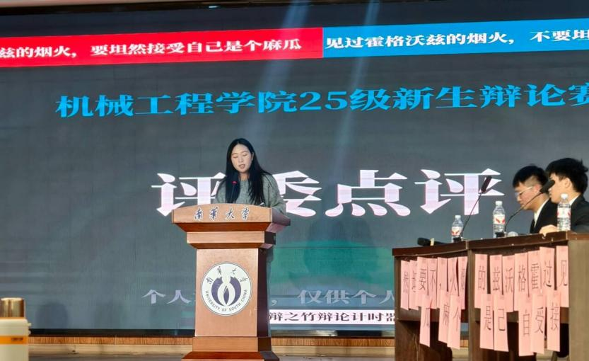 随后进行的冠军争夺战将气氛推向高潮——车辆2501班与材控2501班就“见过霍格沃兹的烟火,要不要坦然接受自己是个麻瓜”这一充满隐喻与哲思的辩题展开终极对决。正方车辆2501班主张“应当坦然接受”,反方材控2501班则坚持“不应坦然接受”,双方引经据典、妙语连珠,在现实与幻想的交织中展开了激烈而深刻的思维较量。