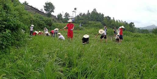 大家妥善安排、合理分工,科学有序的进行各自的任务,积极努力的完成各自的拔草任务。顿时,汗水、歌声、虫鸣鸟叫一派热火朝天的景象。作为其中一员的我,一段时间的劳作,早已经是我疲惫不堪,直呼太累,与我们的老师形成鲜明的对比,同样的时间他们已经超过我们不少,有他们的培训我们没有理由不去追赶与努力。