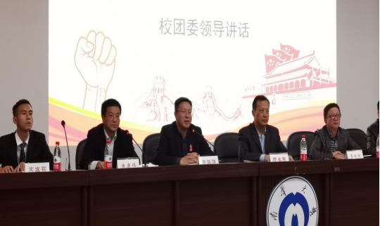 校学工部领导崔泽文副部长发表讲话,对本次大会圆满召开表示祝贺,对长期以来为团学工作辛勤付出的老师和同学们表示真挚的感谢。同时,崔副部长对员工干部及广大同学提出希望,号召同学们心中有理想,前进有方向,胸中有力量,彰显青年风采。