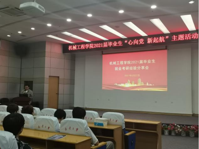 2021届毕业生考研就业竞赛经验分享会,机卓1701班李回归、材控1702班梁怡、机械1704班蒋皓天、材控1701班肖攀同学,与大家交流了考研、就业、保研、科研竞赛等方面的经验,鼓励同学们勤奋学习、不怕吃苦。