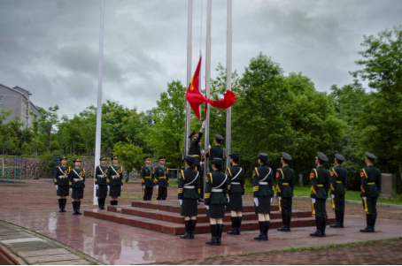 伴随着庄严的国歌声,五星红旗冉冉升起,beat365手机版官网入口在场的全体师生行注目礼,齐唱国歌,场面十分庄重而典雅。