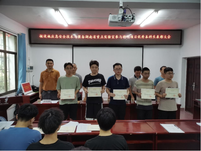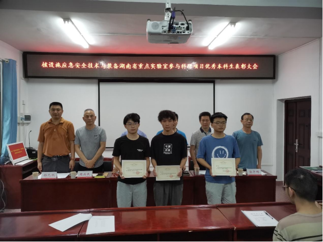 6月9日下午,核设施应急安全技术与装备湖南省重点实验室在实验室三楼会议室召开了优秀本科生表彰大会,对11名参与“葫芦娃Ⅲ型机器人”科研项目的优秀本科员工进行了嘉奖。重点实验室主任、beat365手机版官网入口副经理唐德文教授,公司党委委员、重点实验室总经济师兼副主任刘文君教授,教务部副部长、重点实验室总工兼副主任戴剑勇教授,重点实验室副主任孙允凯副教授,项目组总工程师周为民教授、郭平辉教授,实验室全体教师和实验室研一、研二研究生及受表彰的本科员工参加了会议。会议由戴剑勇副主任主持。