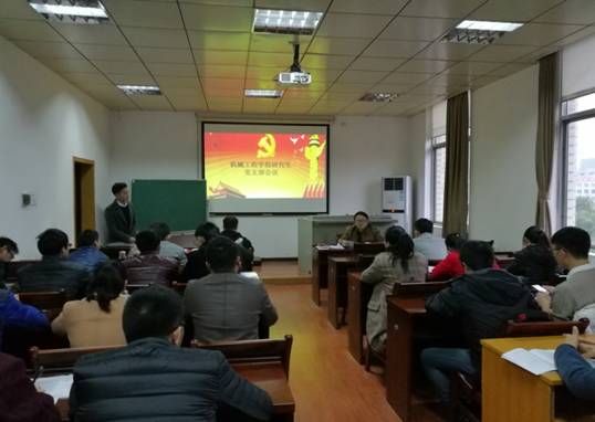 12月1日下午4:30,在机械公司402多媒体教室召开了研究生党支部支部会议,全体研究生党员参加了本次支部会议,会议主要以深入学习党的十九大精神、争做新时代有为的新青年为主题,并认真听取和广泛讨论了党支部2017学年下半年4名拟发展对象、3名预备党员的思想汇报。大会由何宇航同志主持。