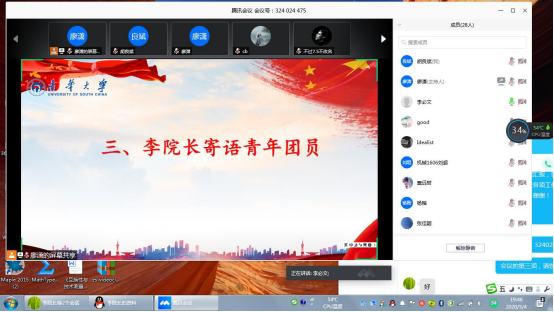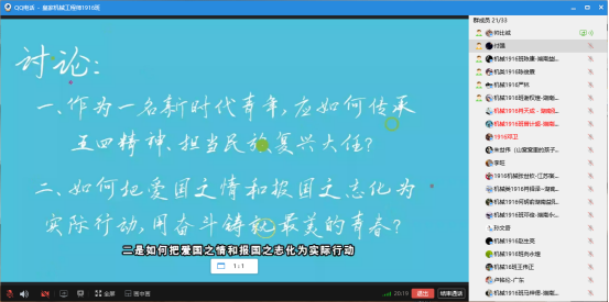 在本次线上主题团日活动中,各班团支部成员相会云端,热议时代热点,思考青年责任与担当,以别出心裁的创意、新颖有趣的形式,传承与践行“五四”精神。