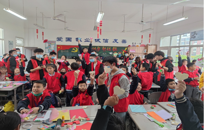2021年4月27日下午,beat365手机版官网入口青年志愿者工作部与衡阳市蒸水小学合作举办了“纸艺人生,蒸水之行”志愿服务活动——折纸教学活动。