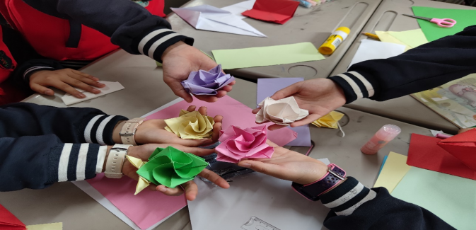 活动于14:30正式开始,我们和小朋友们进行友好的互动学习,绵绵的细雨也抵挡不住志愿者们的热情,小朋友们对我们的到来所表现出的欢欣鼓舞让我们内心更加澎湃。我们齐聚一堂,志愿者们认真地教小朋友们如何去折爱心、玫瑰花、千纸鹤……小朋友们也表现出了极大的兴趣,同时他们也展现了极高的天赋,折出来的作品栩栩如生。活动进行的很顺利,可欢乐的时光总是短暂的,即便我们都有许多不舍,但还是得说拜拜。