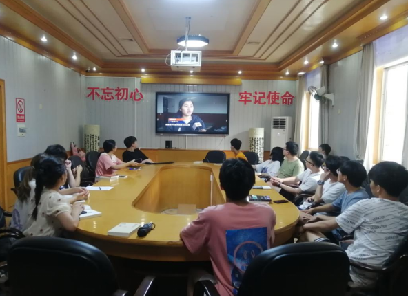 全体参会人员观看《湖湘师表·丁德馨:不忘初心的领路人》,了解丁德馨老师的先进事迹——丁德馨老师多年来不断与病魔战斗,年轻时因下乡劳动患上强直性脊柱炎,之后又患中风,病痛缠身,但仍旧奋战在科研战线上,同时不忘教师职责,认认真真指导员工,创造了一系列教育科研成果。35年来,丁德馨牵头先后攻克了“铀矿堆浸高效喷淋系统”“大通量离子交换装置”等关键技术,多次获得“国防科学技术奖”、“湖南省技术发明奖”、“湖南省科技进步奖”。