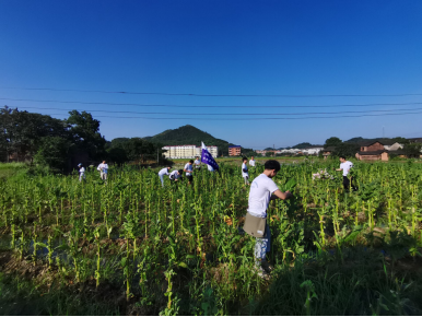 2021年7月14日上午8点,beat365手机版官网入口“三下乡”暑假团队整装待发,前往衡阳市衡阳县渣江镇盐田村烟草种植基地。