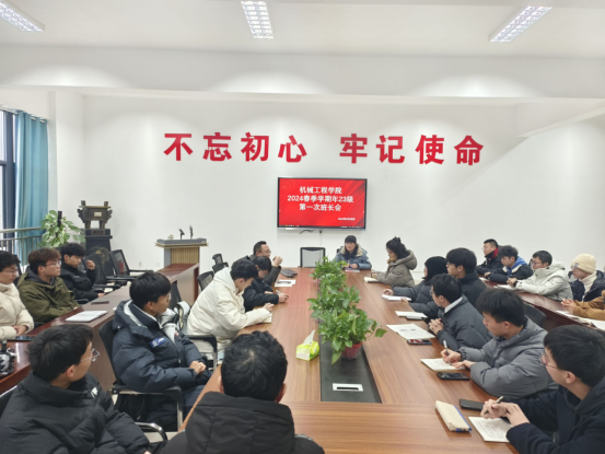 新学期、新气象、新使命。2月28日中午,2024春季学期第一次23年级新生班长例会在机械楼212会议室召开。辅导员杨佳、蔡军、甘翠出席会议,23年级全体新生班长参会。