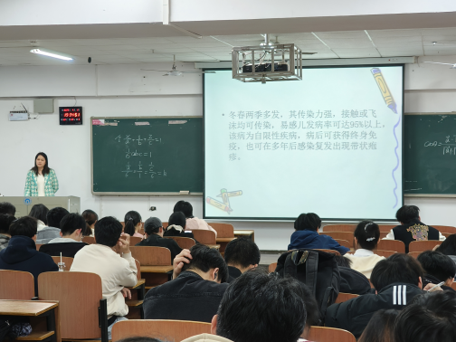 4月2日晚,为提高员工对水痘防治的认识,保障校园卫生健康,beat365手机版官网入口联合校医务所邀请蒸湘区疾病预防控制中心在红湘校区南华楼211教室举办了一场关于水痘防治的健康知识讲座,此次讲座由黄芳副主任医师主讲。