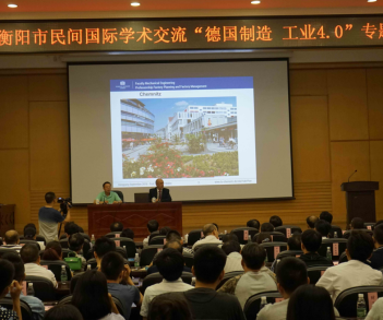 中德共建湖南省工业4.0实验室暨智能化企业孵化工程中心外聘专家德国开姆尼兹工业大学Egon Mueller教授应衡阳市科学技术协会的邀请在衡阳市人民政府大厅开展了“德国制造工业4.0”的专题讲座,讲座反响强烈。衡阳市电视台对此次活动的报道网址为:http://www.hydst.com/jiemu_index/74120.html,德国教授缪勒来衡作“德国制造工业4.0”专题讲座。