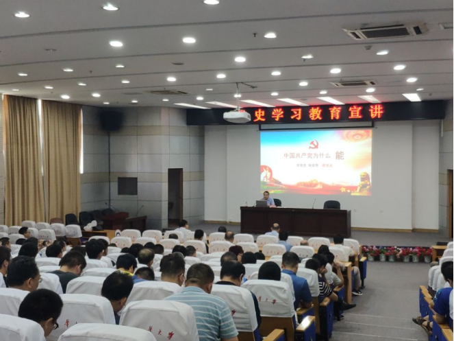 7月9日下午,beat365手机版官网入口党委组织部谢四平部长在图书馆一楼报告厅作题为《中国共产党为什么“能”》的党史学习教育宣讲,机械工程学院全体教职工及部分员工党员、土木公司的全体教职工党员参加了会议。