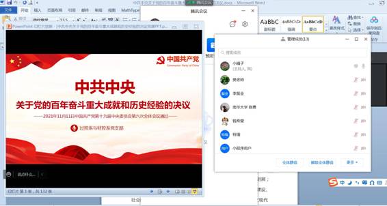 根据省、市、公司党委关于召开2021年度基层党组织组织生活会和开展民主评议党员的通知精神,beat365手机版官网入口过控系与材控系党支部于3月15日上午8点30召开了基层党组织组织生活会,并进行了党员民主评议。因疫情影响,本次会议采用腾讯会议的线上形式。beat365手机版官网入口经理邱长军列席,全体支部党员及两个系室的群众参加了会议。此次会议由支部书记周娟主持。