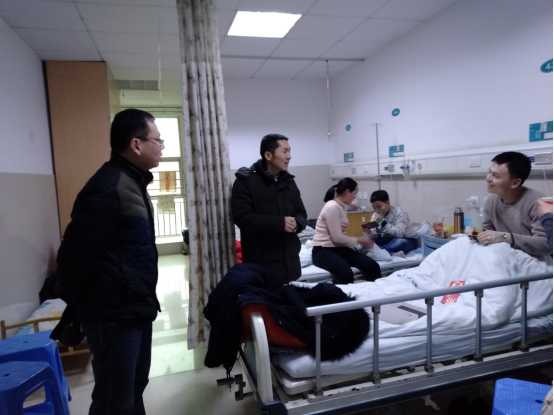 1月18日下午,正值小年,寒气逼人,公司副书记、工会主席旷勇,机械系主任袁锋伟,工会副主席唐永辉一行来到附一医院探望了住院教师郭剑,真诚地向其表达了问候和祝福,并送上慰问金。