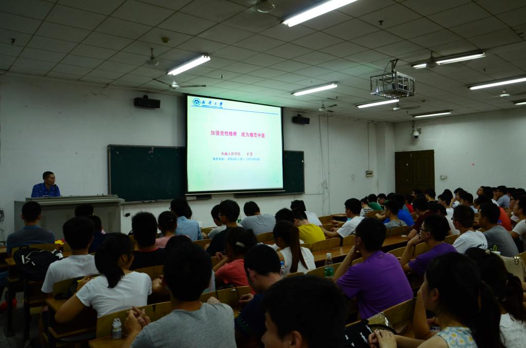 会议伊始,全体起立,奏国歌。随后,辅导员杨佳带领新党员进行庄严宣誓。宣誓完毕,党委副书记旷勇给公司全体员工党员上了一堂内容丰富的党课,对全体新、老员工党员提出殷切希望。他指出,预备党员刚加入党组织,对党的认识不够全面,民主组织生活经验缺乏,应加强学习,求真务实,深入贯彻习近平总书记“三严三实”相关要求,不断加强思想建设,提高党性修养以早日转正。其次,他要求新老党员要能在关键时刻,特别是艰难险重的问题面前发挥出先锋作用,以此结合本学期寝室搬迁工作对党员发出了号召,希望全体员工党员能铭记“全心全意为人民服务”的宗旨,为身边的同志谋实事。
