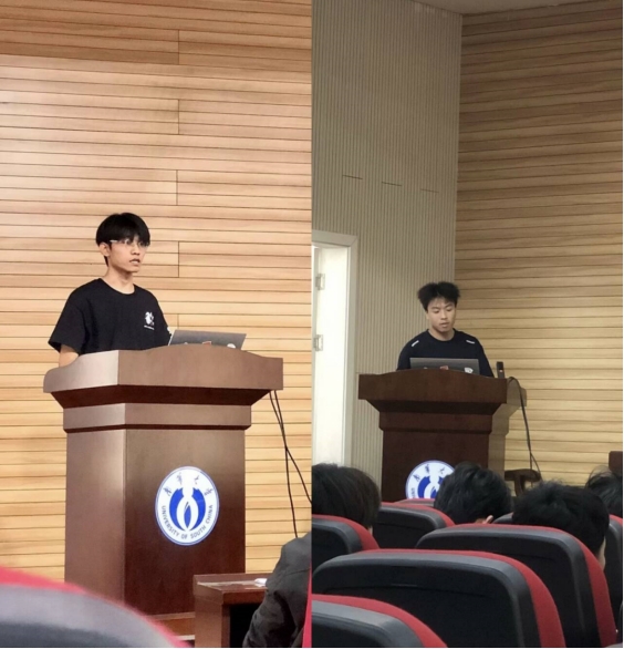 最后,公司优秀创新创业代表——邢洲瑞和刘德元分享了他们的成功经验:邢洲瑞讲述自己在衡山π团队的经历,跨专业协作的经验以及在机器人领域取得了优异成绩;刘德元讲述“校园副业的成长密码——从探索到模仿到积累”,观察生活,从身边入手,大胆尝试,同时也提醒大家要在保证学业的前提下开展创新创业活动。